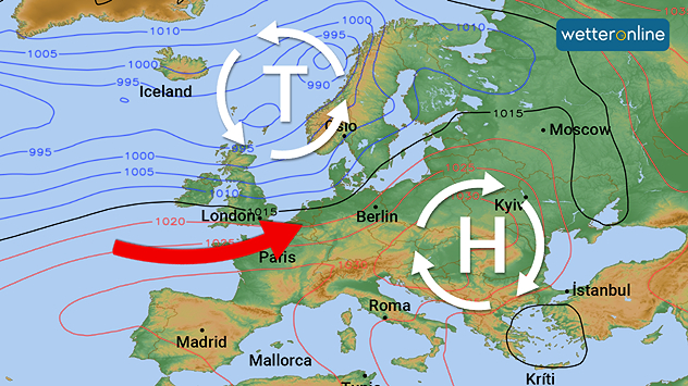 Ende der Woche gelangt zwischen einem Tief über Nordeuropa und einem Hoch über Südosteuropa milde Atlantikluft zu uns.