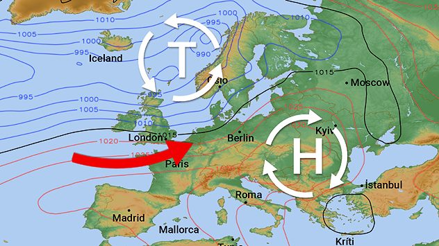 Mittwoch Abend / Nacht: Wind aus Richtung 225 Grad mit Windstärke 6-7 Beaufort
