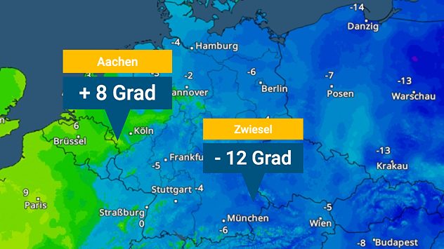 Nach einem sonnigen Mittwoch und Donnerstag wird es in Pettneu am Arlberg am Freitag wolkiger und die Sonne scheint nur noch zeitweise. Dazu bleibt es überwiegend trocken. Es wird wärmer: Die Höchstwerte steigen von 2 Grad heute auf 5 Grad am Freitag.