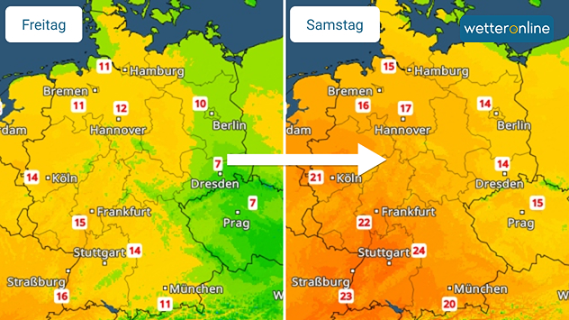 TemperaturRadar: Morgen gehen die Temperaturen spürbar zurück. Schon am Samstag wird es wieder wärmer.