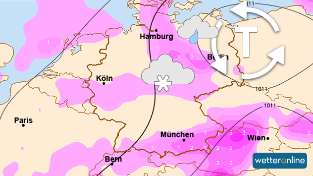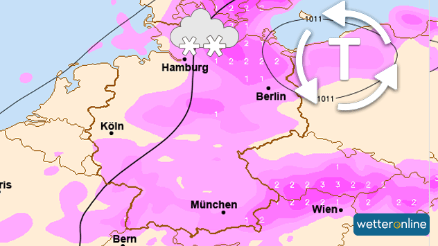Noch ist nicht ganz sicher, welche Zugbahn das Tief einschlägt. Wenn es weiter nördlich Richtung Ostsee zieht, dann liegt der Schwerpunkt der kräftigen Schneefälle zwischen Vorpommern und dem östlichen Schleswig-Holstein.