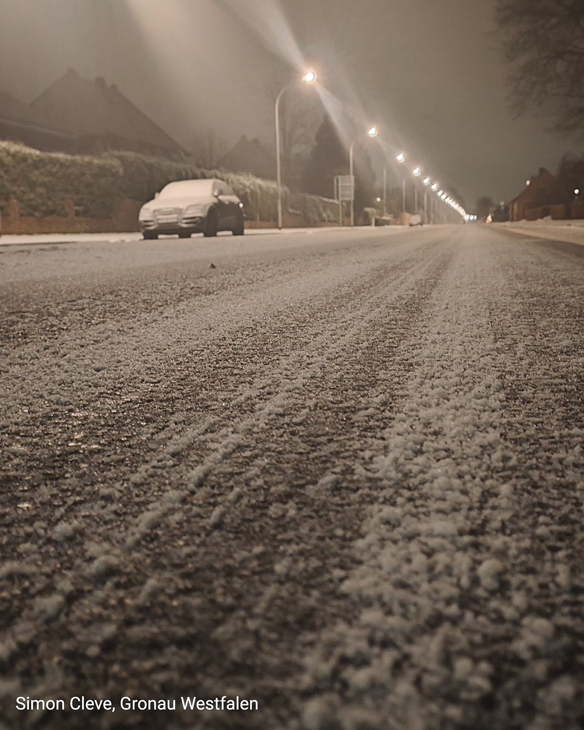 Gefrierender Regen kann in der Nacht zum Dienstag und am Dienstagmorgen vor allem von Sachsen über Berlin bis zur Ostsee noch zu gefährlich glatten Straßen und Wegen führen. - © Foto: Andreas Neuner via WetterMelder DeutschlandAm Montag hat uns eine gefährliche Glatteislage durch weite Teile des Landes begleitet: Eine Wetterfront brachte zunächst Schnee, anschließend fiel vermehrt gefrierender Regen. Straßen und Wege waren verbreitet glatt. Alle Infos im Live Ticker.
