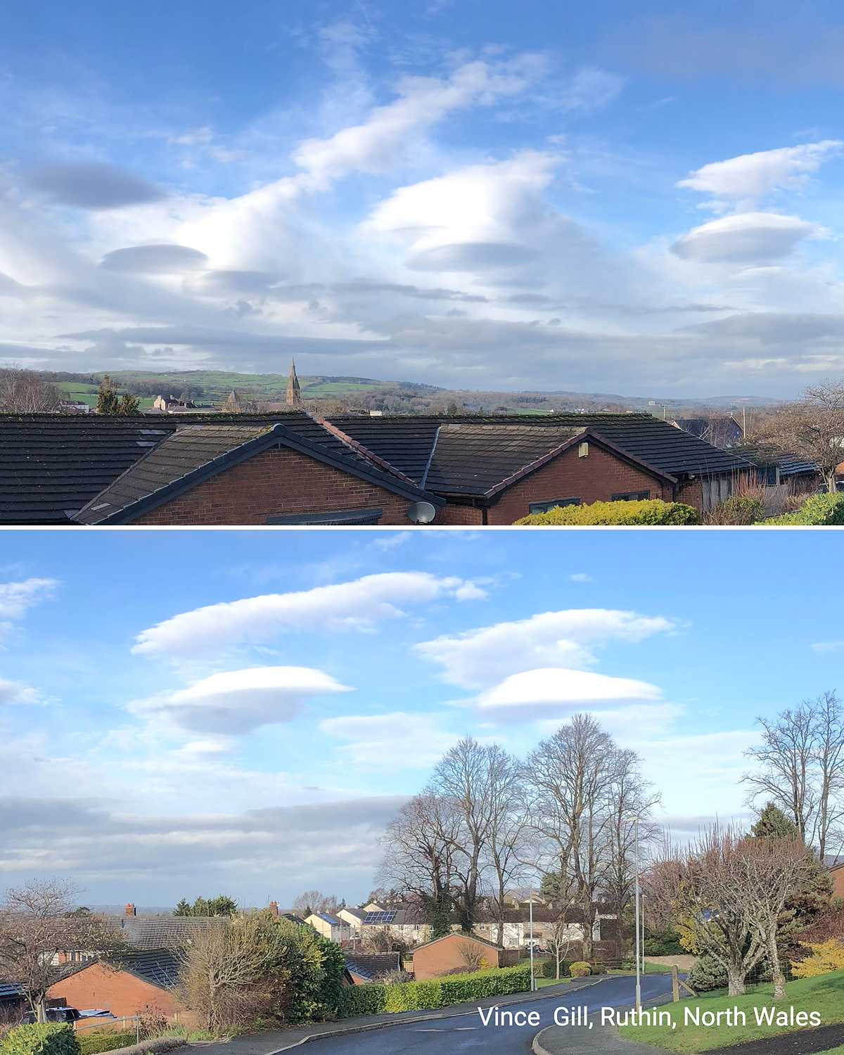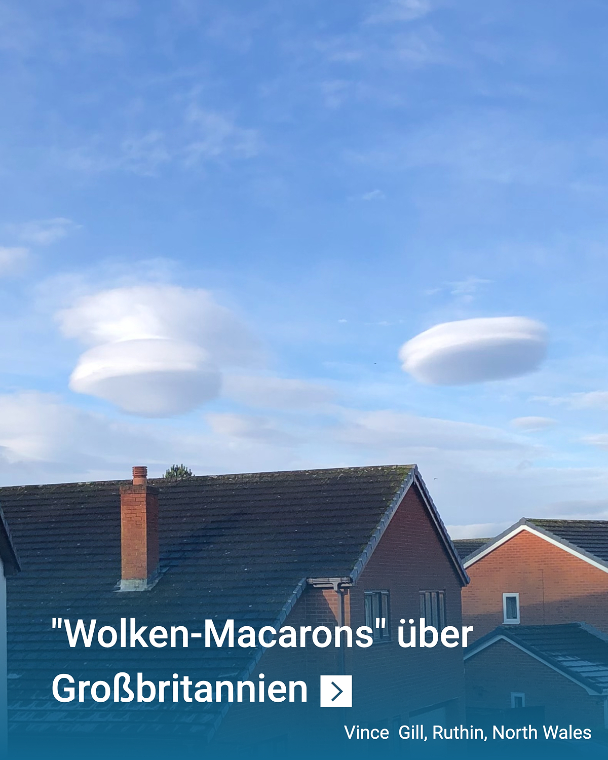 Sie sehen aus wie schwebende Ufos, Macarons oder riesige Linsen am Himmel: Lenticularis-Wolken gehören zu den auffälligsten Wolkenformen überhaupt. In den vergangenen Tagen waren sie über Wales zu sehen.